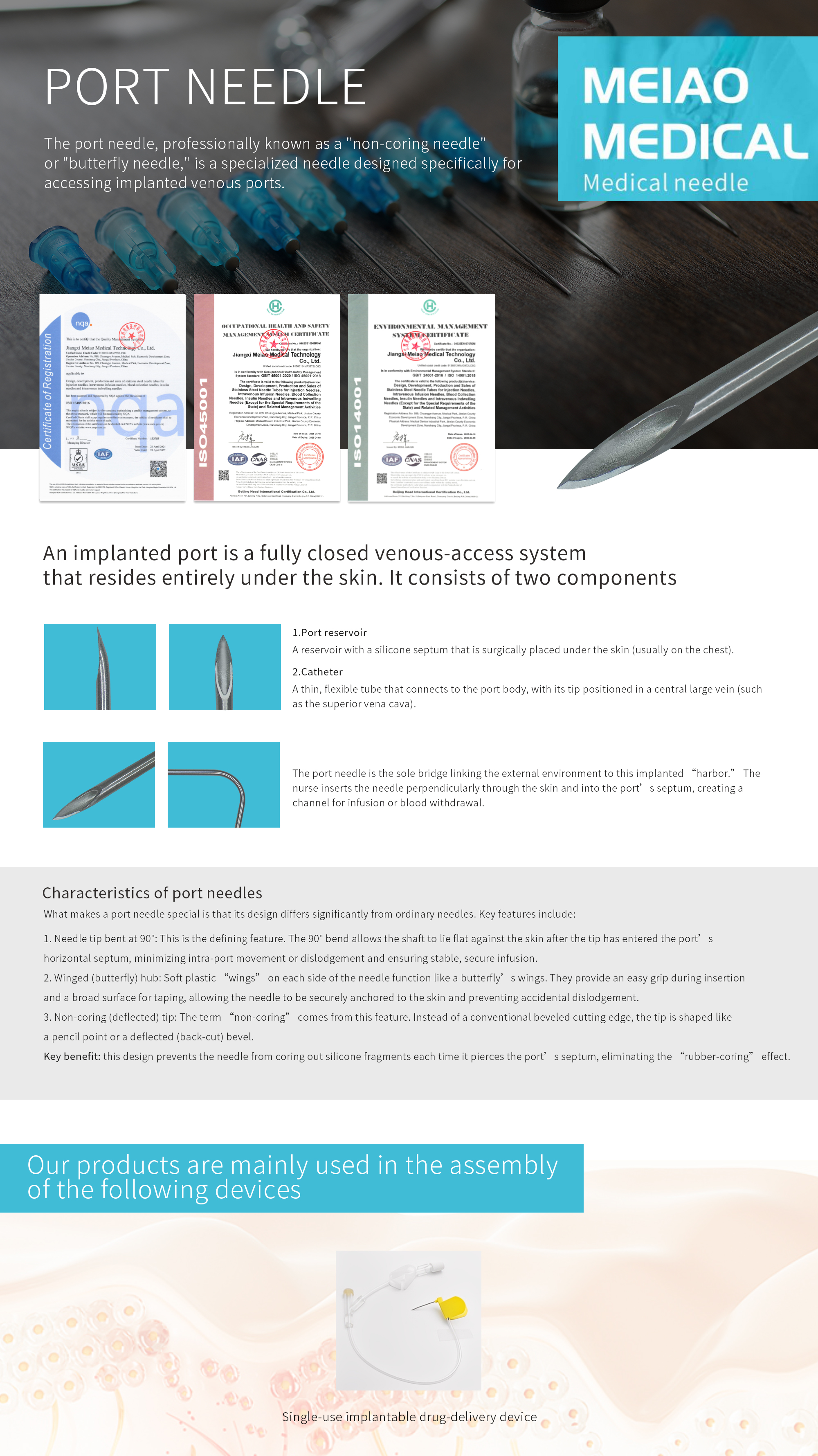 What makes a port needle special is that its design differs significantly from ordinary needles, Key features include: