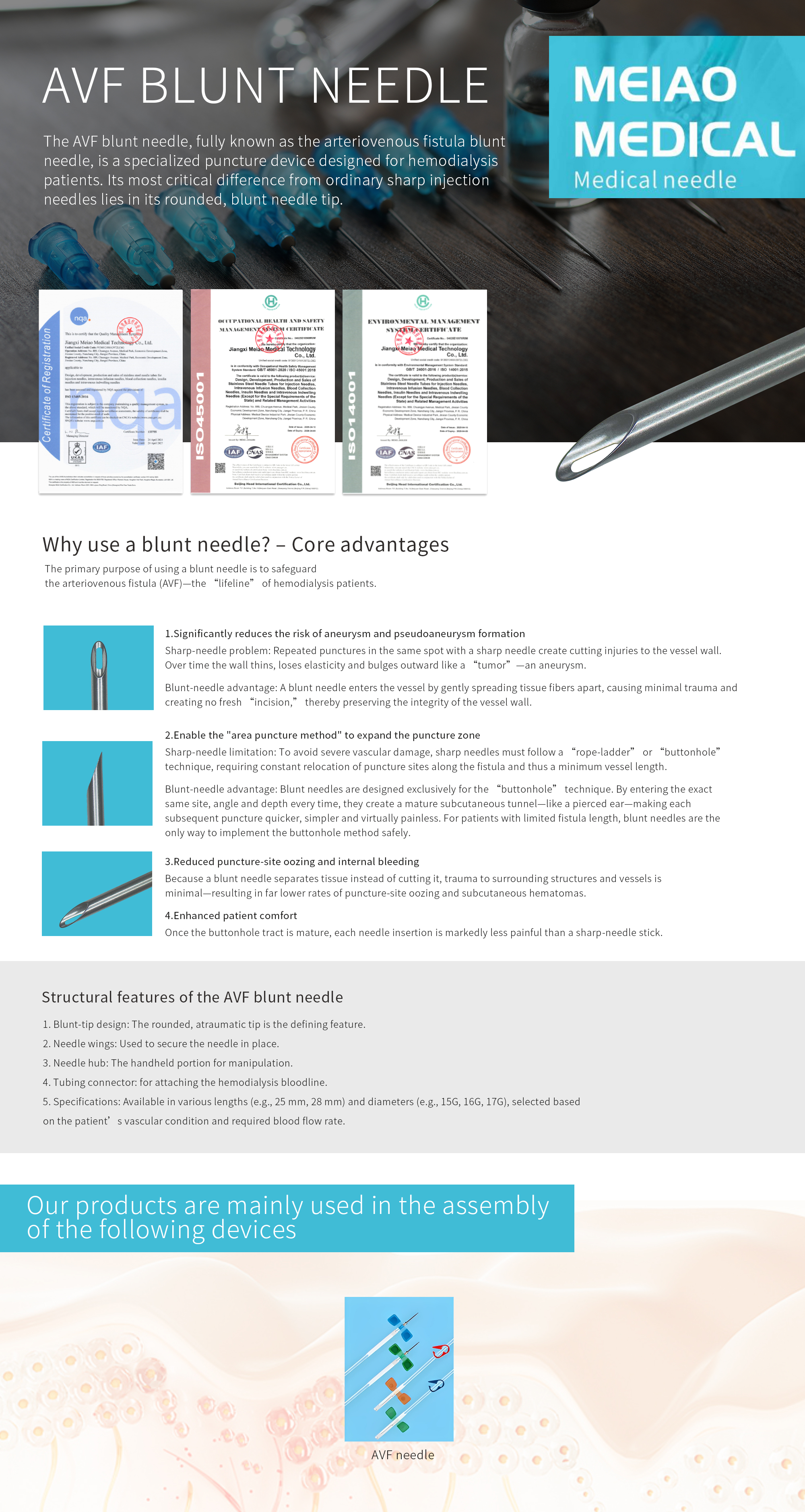 Structural features of the AVF blunt needle